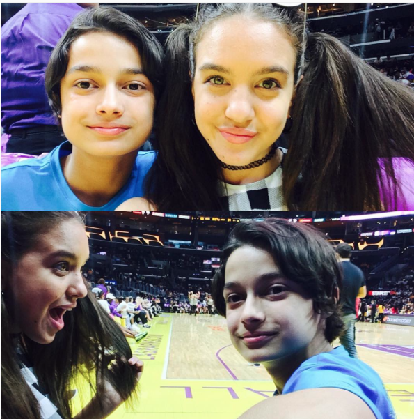 Rio Mangini wrote along with a photo he shared through his Instagram account, “#courtside #who‘s here? #GoSparks ! #LASparks @staplescenter #BellaAndtheBulldogs @ Staples Center”.